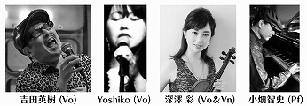 吉田英樹(vo) Yoshiko(vo) 深澤彩(vn&vo) 小畑智史(Pf) | ①19:30~ | 税込C:3300 + 2 オーダー |